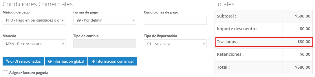 Para incluir éste impuesto presiona el botón , en la parte final podrás ver la cantidad que se aplicó.