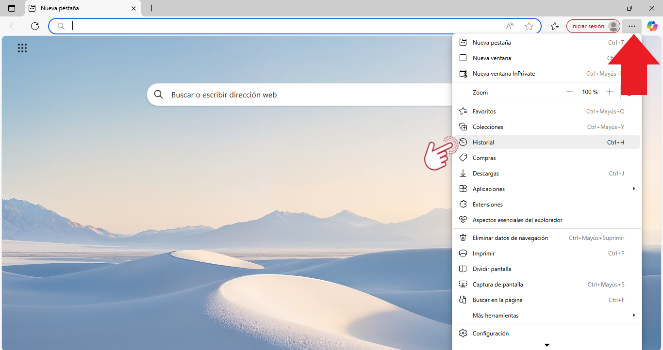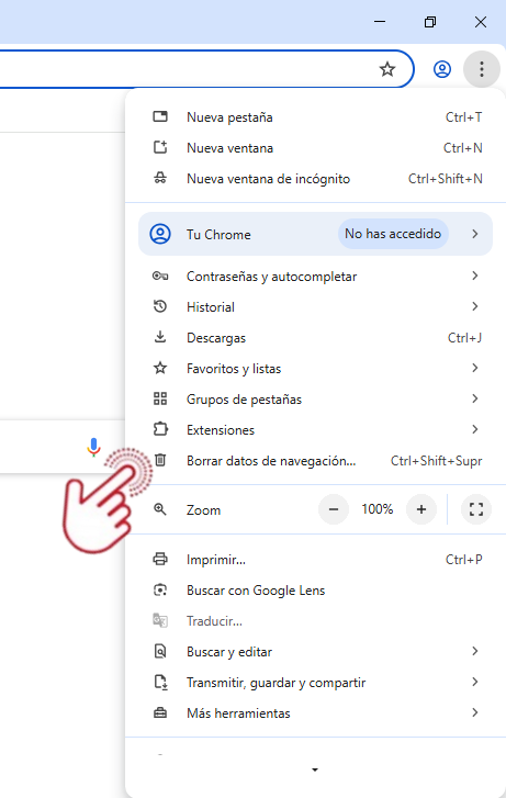 que se encuentra en la parte superior derecha del navegador. Haz clic en