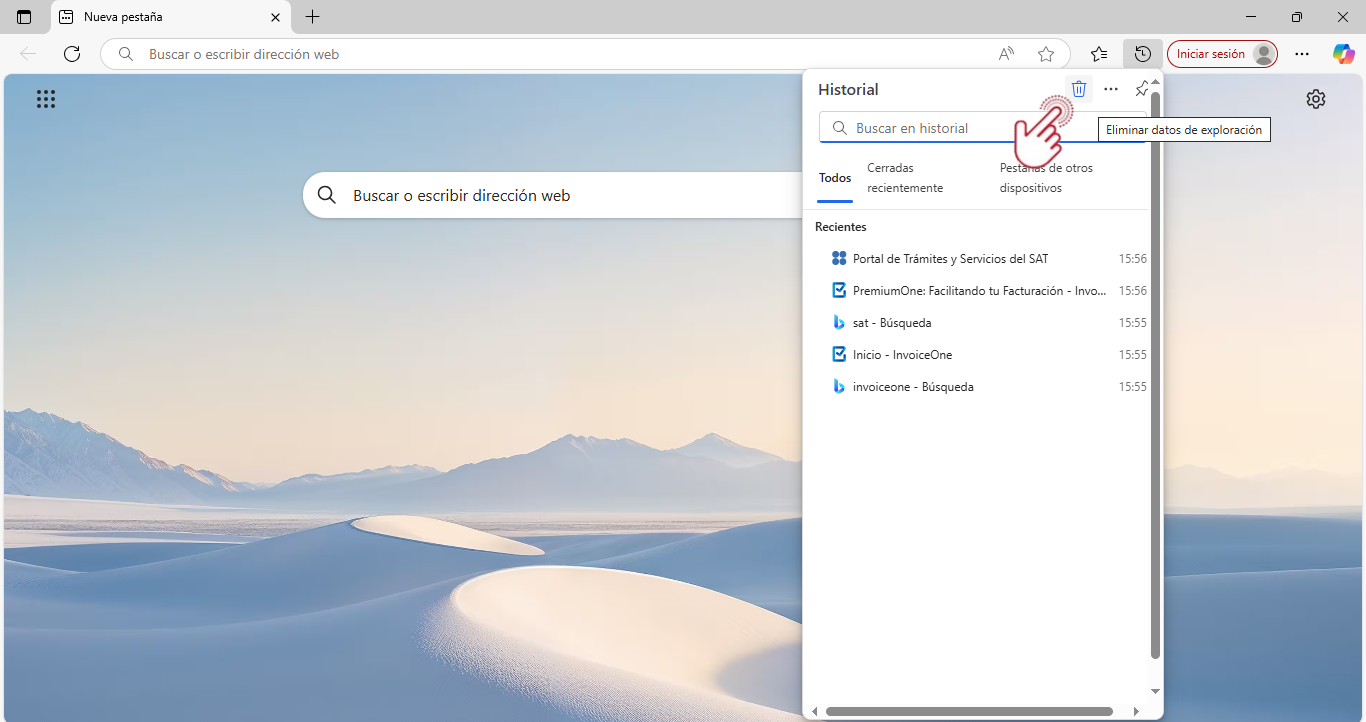 Cuando consultes el historial de navegación, podrás eliminar determinados sitios o volver a páginas web que ya visitaste. Si revisas periódicamente el historial de navegación, ayudarás a proteger la privacidad de tus datos.