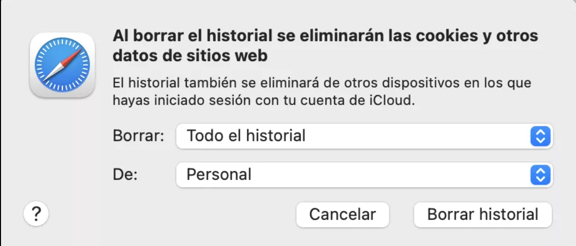 Puedes realizar la limpieza rápidamente con el siguiente proceso, solo considera que si tu Mac y demás dispositivos tienen activado Safari en las preferencias de iCloud, al hacer la limpieza de su historial de navegación se habrá borrado de todos ellos.