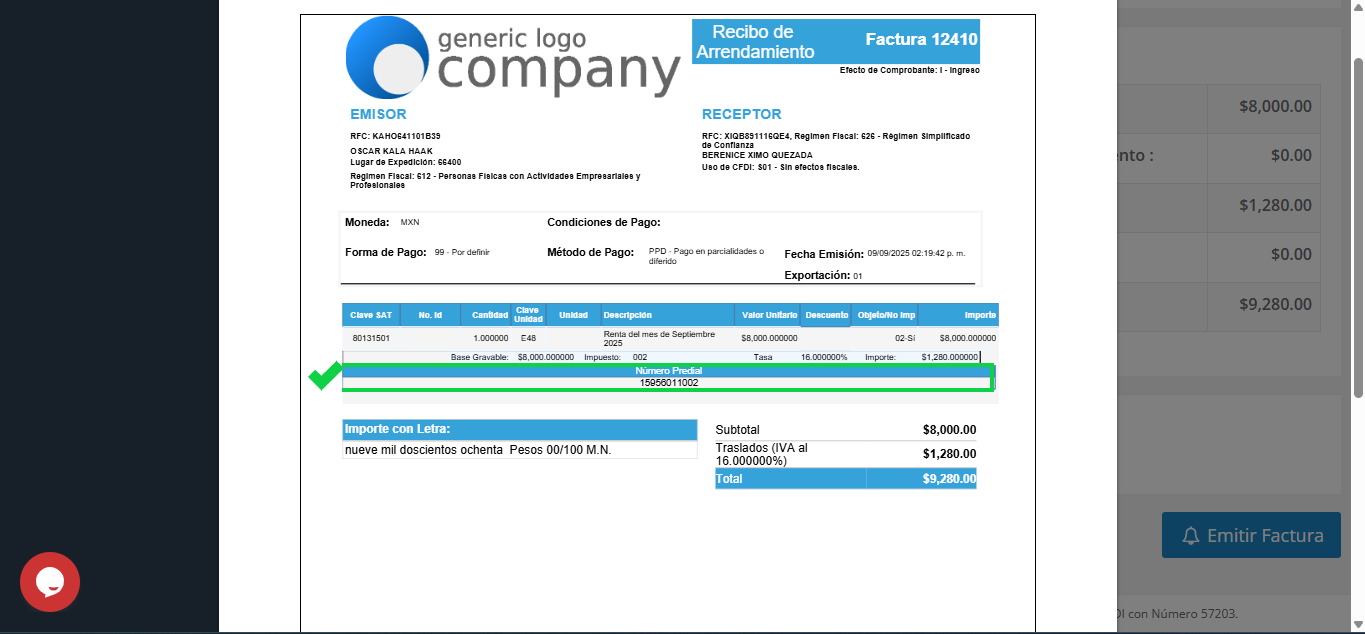 Por lo que podrá previsualizar en tu factura similar a lo siguiente: