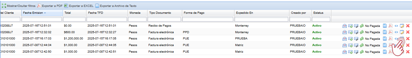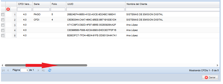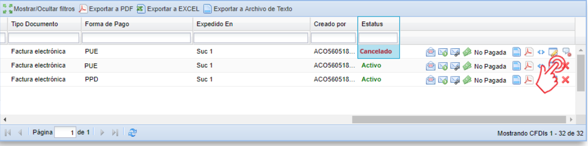 Una vez que tengas ubicado el CFDI a cancelar, desliza la barra de navegación que se encuentra en la