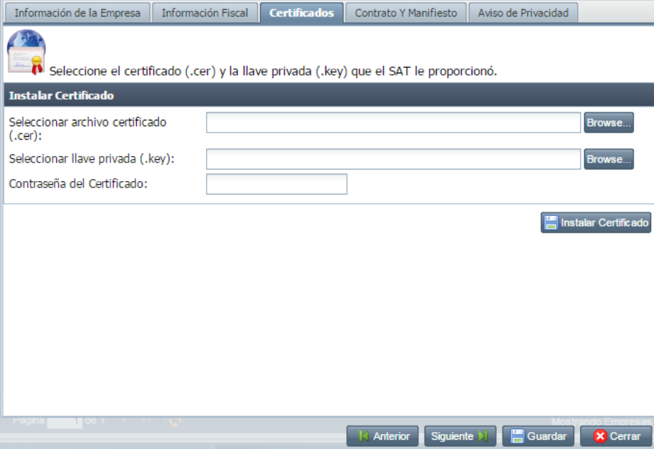 Ya seas Persona Física o Persona Moral el certificado que instalarás en ésta pestaña es tu Certificado de Sello Digital (CSD). Este Sello se compone de un archivo .cer, un archivo .key y una contraseña. Ninguno de estos componentes deberá pertenecer a otro trámite distinto, como por ejemplo la FIEL.