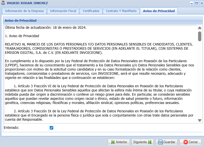 Revisa la última Pestaña Aviso de Privacidad, en ella podrás encontrar a detalle el compromiso que tenemos sobre el manejo de tu información, sugerimos leerlo detenidamente, estará disponible para ti en cualquier momento.