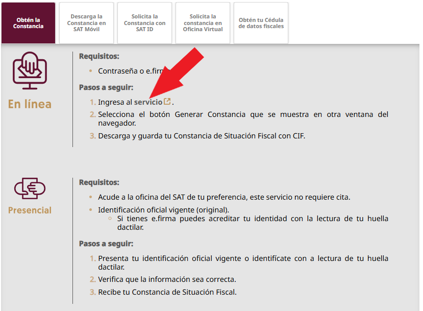 el que estás tributando, puedes obtener tu Constancia de Situación Fiscal desde el portal del SAT con el