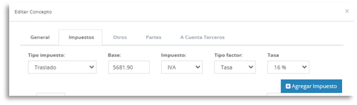 al igual que en tu factura, ingresa en Editar (lápiz) para aplicar el Objeto de Impuesto y trabaja en Impuestos el desglose de: traslados