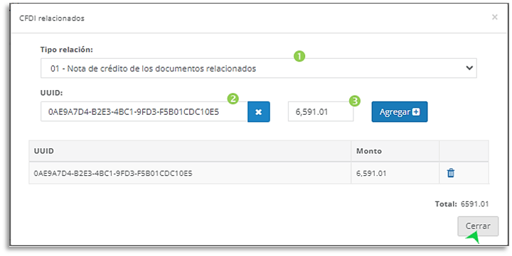impuestos- que se reducirá del valor de la factura, da clic en Agregar (así por cada CFDI