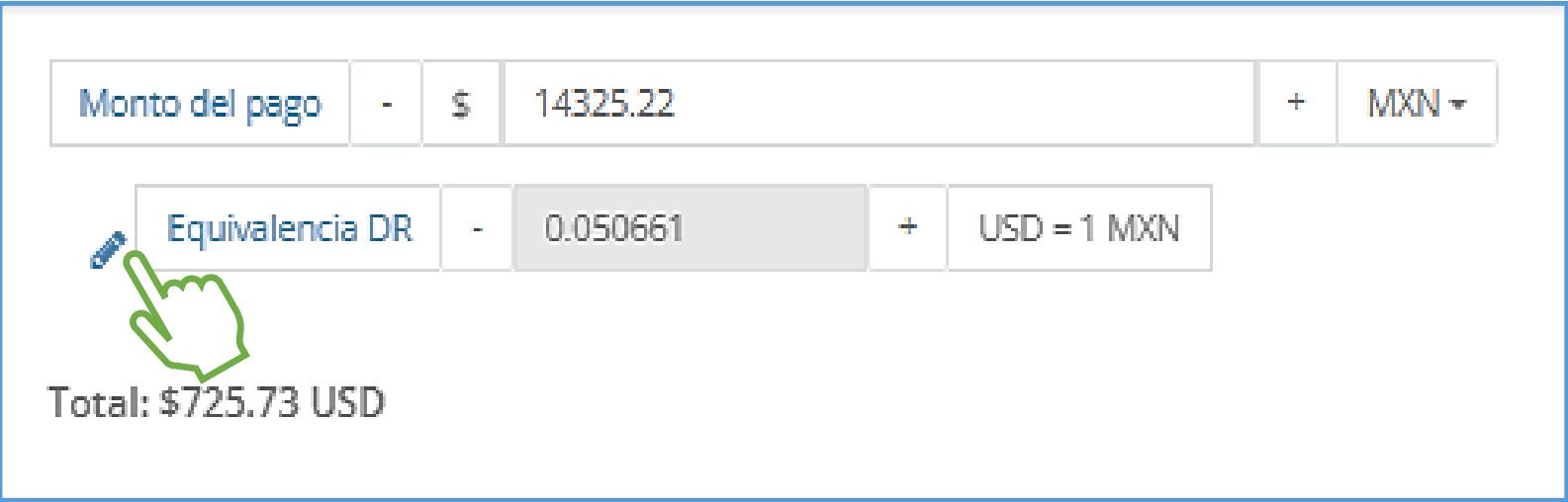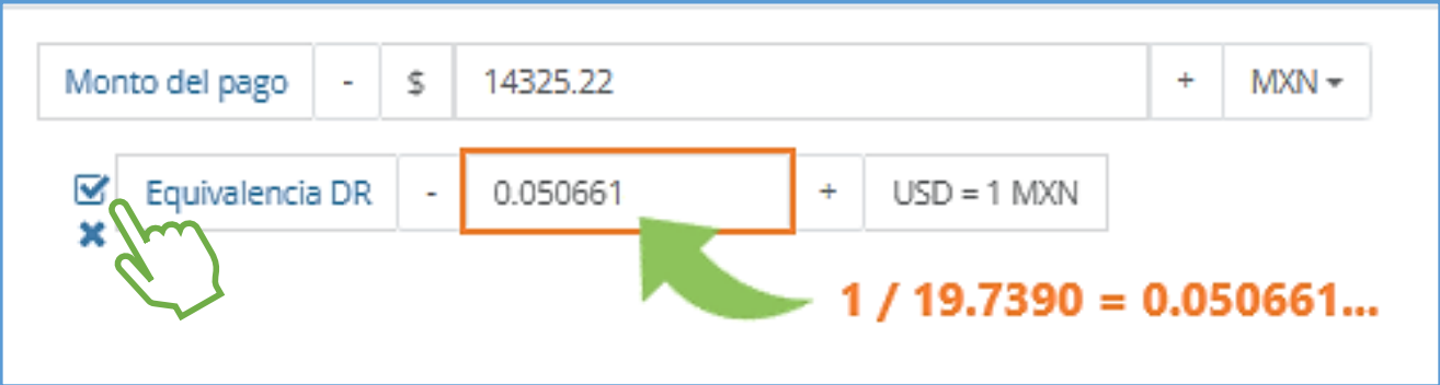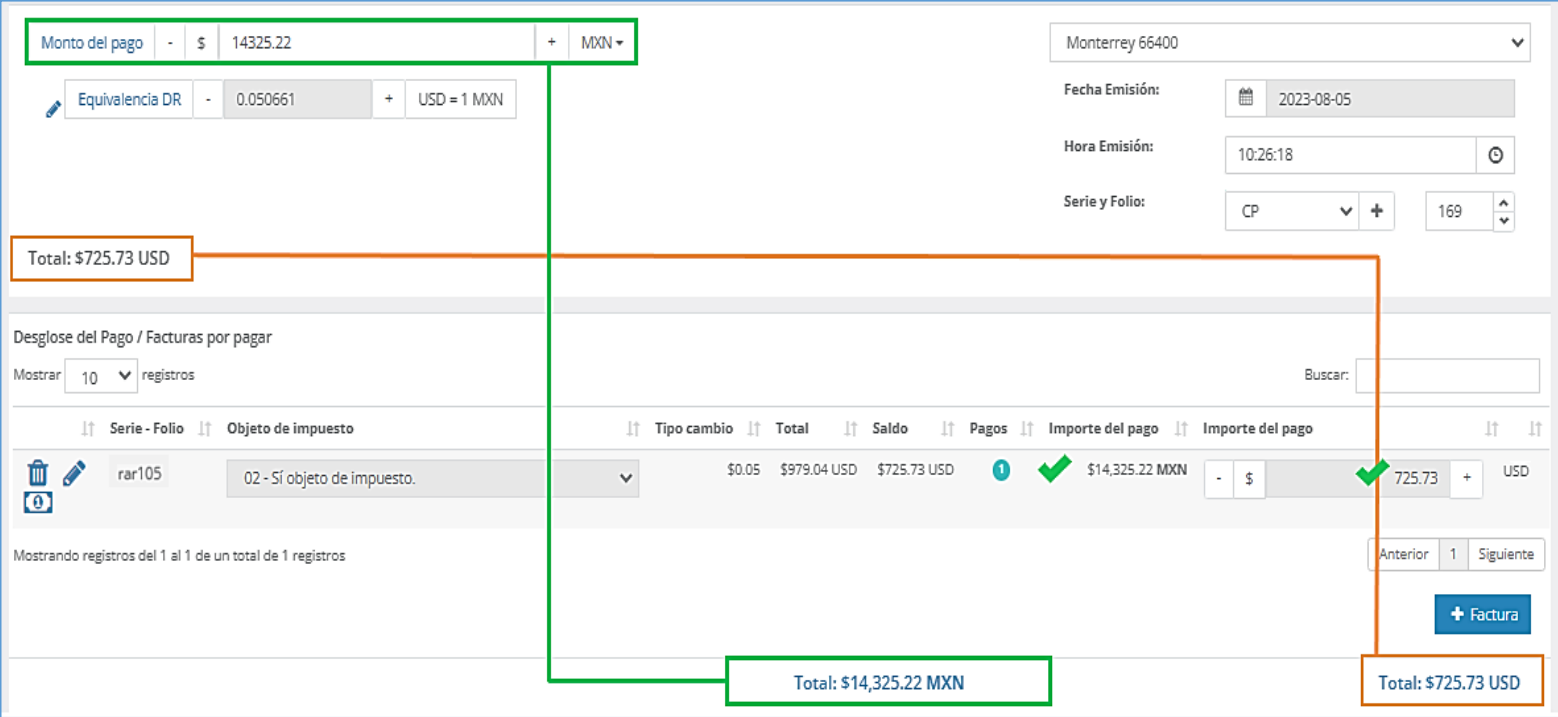 - En Monto del pago y moneda, ingresa la cantidad recibida en MXN