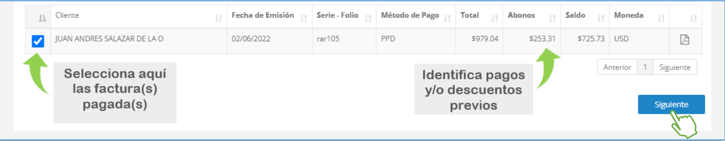 A continuación, te mostramos el proceso para emitir un recibo de pago de una factura emitida en dólares