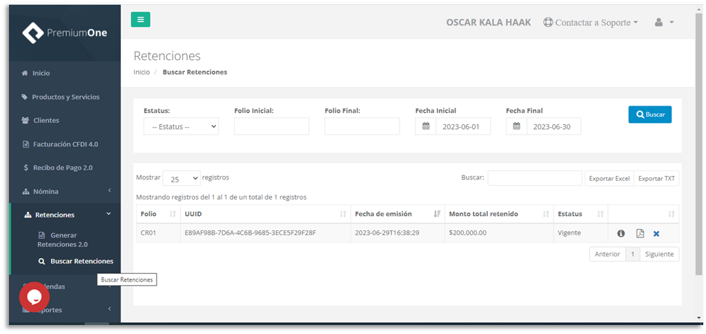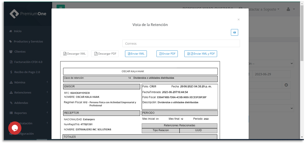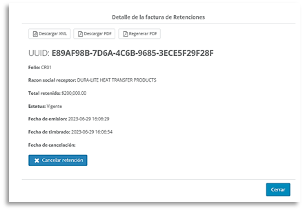 la retención, descargar los archivos y hasta cancelar el comprobante de ser