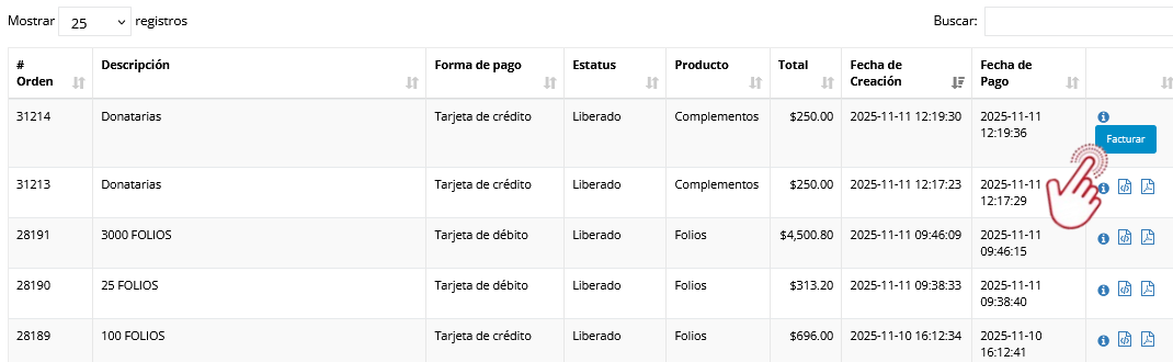 Si ya se encuentra facturada dirígete al punto 2 para ver las instrucciones de descarga