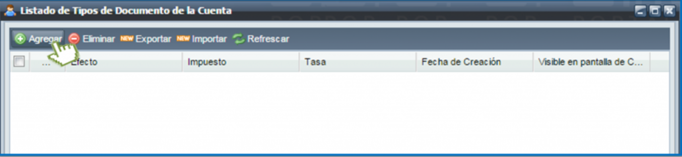 Tipo de Documento Selecciona el tipo de CFDI que emitirás, entre las opciones encontraras Facturación Electrónica, Recibo de Honorarios, Nota de Crédito, Recibo de Arrendamiento entre otros. | Impuestos Selecciona el tipo de impuesto que manejarías en tus CFDI. Si manejas mas de un impuesto para éste tipo de comprobante deberás agregarlos de forma individual, una vez guardado el primer impuesto podrás dar clic en Agregar para dar alta un nuevo impuesto. | |